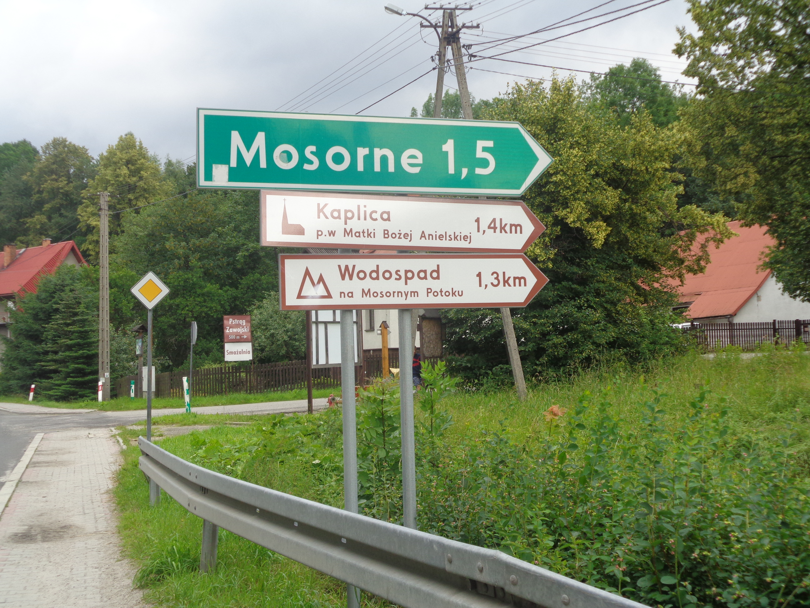 Zawoja Mosorne is a housing estate situated on the northern hillside of Mosorny Groń, in the valley of the Mosorny Stream. The name Mosorny has a pastoral origin because 'mosory' were wooden dippers of different sizes, used by shepherds for e.g. drinking 'żentyca' (whey) . A century ago the upper part of the Mosorny Stream and the surrounding hills were mostly grazing grounds with huts, where the whole families from the village came with their cows to live for the period of collecting hay.